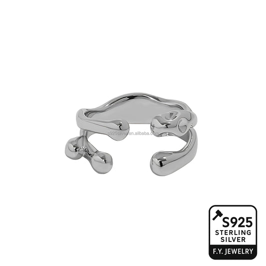 Abstract Droplet Shape 925 Sterling Silver Adjustable Open Band Ring for Women