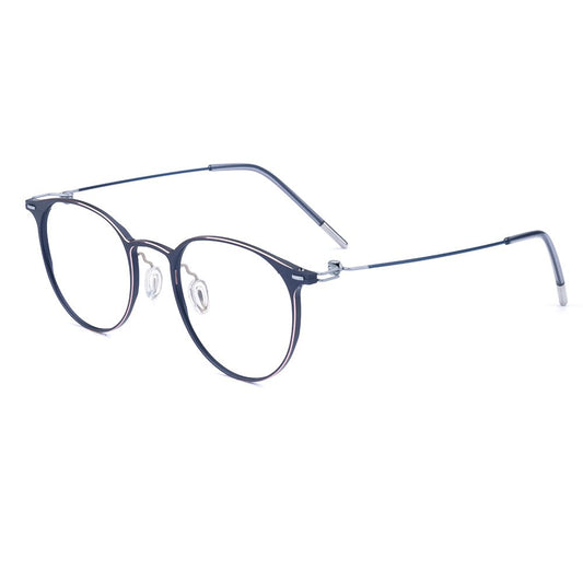 MCROONS glasses effortlessly blend style and sophistication, making them a versatile accessory for any occasion. The round shape offers a classic yet modern look, perfect for both casual and professional settings. The dark blue frame provides a subtle, refined contrast to the vibrant purple temples, adding a pop of color without overwhelming the design.
