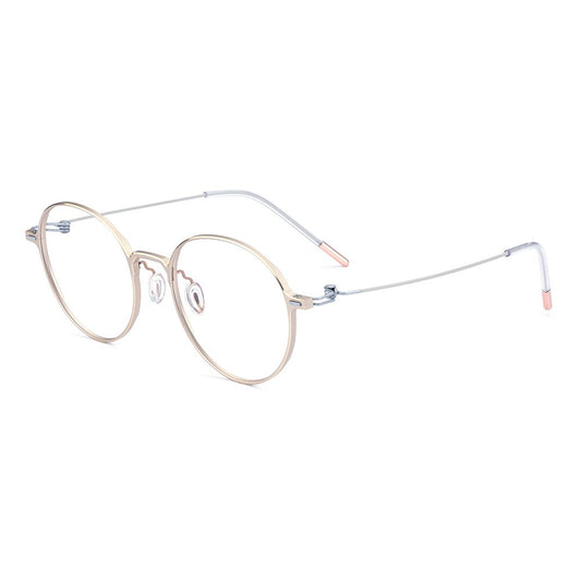 Elevate your eyewear collection with these chic round glasses. Crafted with a light pink frame, complemented by lavender arms, they blend retro charm with contemporary elegance. The delicate design ensures comfort and style, making them perfect for both casual outings and professional settings. The rose gold tips provide a subtle accent, enhancing the overall aesthetic. Ideal for those who appreciate a unique twist on classic eyewear.