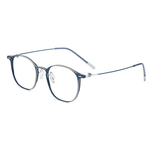 MCROONS fashionable glasses showcase a sleek, light blue metallic frame that is both lightweight and durable. The round lenses are surrounded by a minimalist design, making them perfect for those seeking a chic, understated look. The clear lenses provide versatility for both prescription and non-prescription use, making them suitable for everyday wear or as a stylish accessory. Ideal for both men and women, these glasses are a great addition to any outfit, blending seamlessly with various styles.