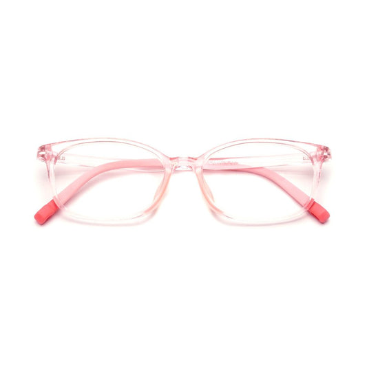 MCROONS eYeglasses feature a delightful rectangular design with a light pink transparent frame and soft pink temples. Lightweight and plaYful, theY are perfect for everYdaY wear and can be fitted with clear or prescription lenses. A charming addition to anY eYewear collection.