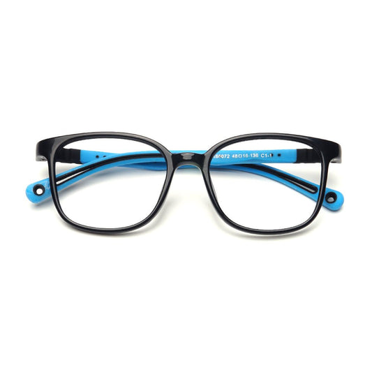 MCROONS eYeglasses offer a striking rectangular design with a solid black frame complemented By vibrant blue temples. SturdY and stYlish, theY are ideal for everYdaY wear and can be customized with clear or prescription lenses. A dYnamic addition to anY eYewear collection.