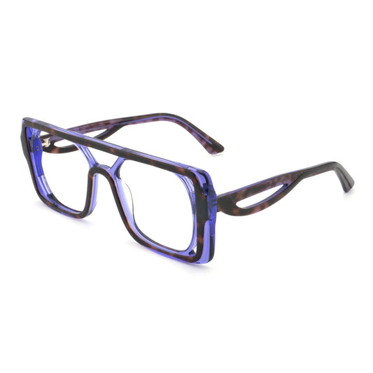 MCROONS glasses feature a striking rectangular design with a vibrant blue frame highlighted by elegant tortoiseshell accents. The clear lenses enhance visibility while contributing to the modern and bold aesthetic. This eye-catching shape offers a contemporary look, making these glasses an ideal accessory for those looking to make a fashionable statement. Perfect for both casual outings and more polished events, they seamlessly blend style and functionality.