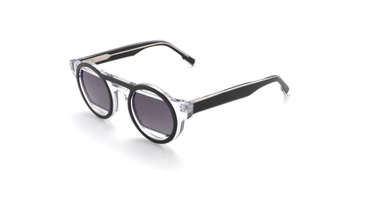 MCROONS sunglasses feature a sleek gunmetal frame paired with clear lenses, offering a modern and sophisticated aesthetic. The round shape lends a timeless quality, making them versatile for various styles and occasions. Perfect for those who appreciate a minimalistic yet chic look, these glasses combine elegance with practicality, making them a stylish addition to any ensemble.