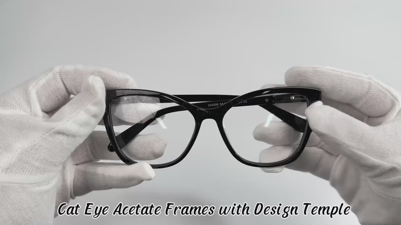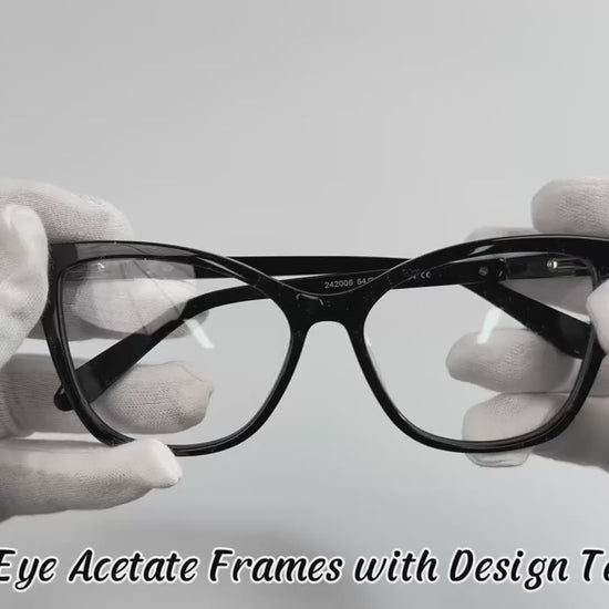 These Fashion Design Cat Eye Ladies Acetate Eyeglass Frames are made from high-quality acetate for durability and comfort. Their stylish cat-eye design suits all face shapes, offering a versatile and fashionable look for women