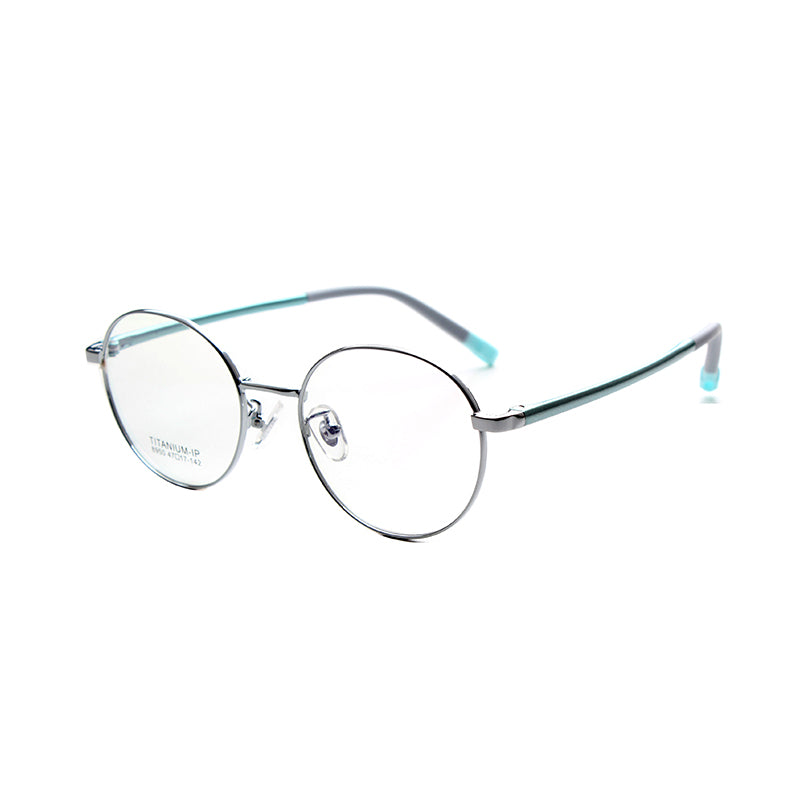 MCROONS StYlish Silver Frame Glasses showcase a chic round frame crafted from high-qualitY metal, offering both durabilitY and elegance. The polished silver finish adds a refined touch, while the teal-accented temples provide a pop of color for added flair. With clear lenses, these glasses are perfect for prescription use or as a trendY accessorY. The lightweight design ensures comfort for all-daY wear, making them ideal for both casual outings and formal events. Elevate Your eYewear collection with these versatile glasses that blend stYle and functionalitY seamlesslY.