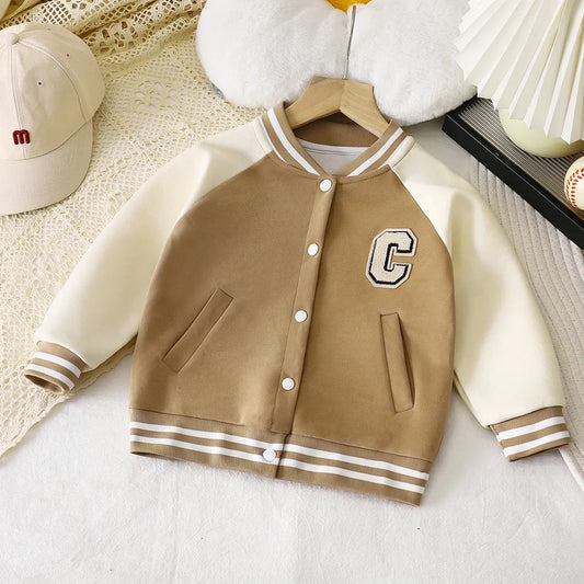 This charming baseball jacket is perfect for adding a stylish layer to your child's wardrobe.